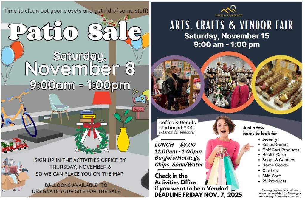 *Contact the Activities Office at 623-583-6092 to become a vendor or sign up for patio sales